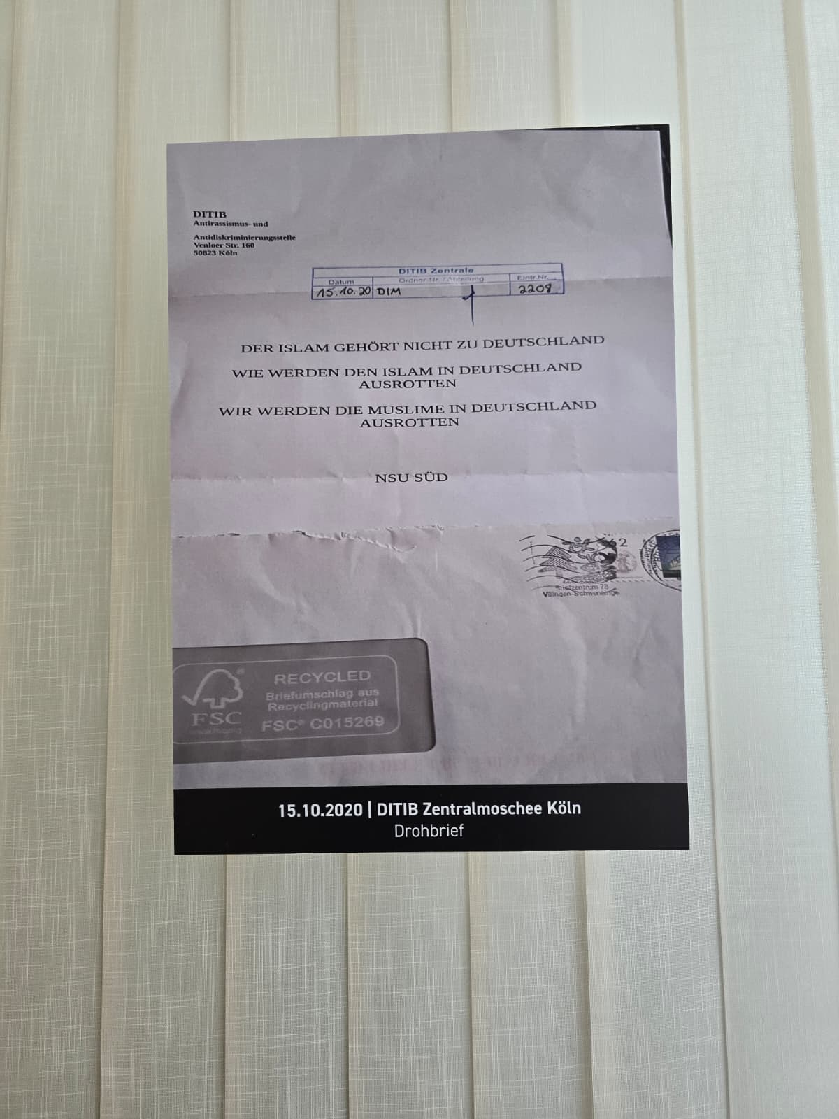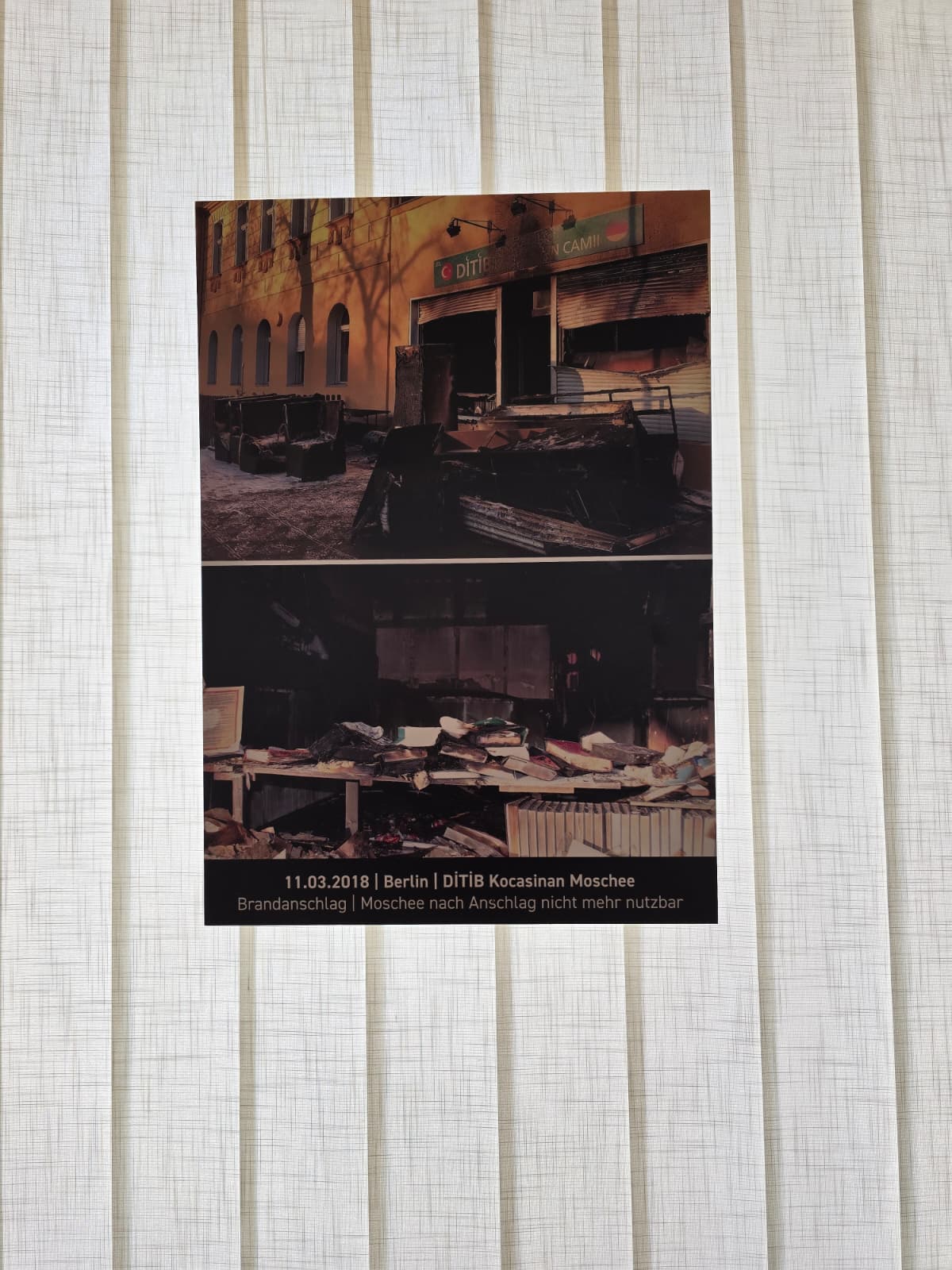 Anhand von visuellen Materialien dokumentiert die Ausstellung verschiedene Formen von Übergriffen – darunter Brandstiftungen, Drohungen, Sachbeschädigungen und Schmierereien. Darüber hinaus werden auch islamfeindliche, hetzerische und teils bedrohliche Briefe sowie E-Mails gezeigt. Besucherinnen und Besucher haben die Möglichkeit, originale Inhalte, Äußerungen und Karikaturen einzusehen und sich ein eigenes Bild von der Intensität und Wirkung solcher Anfeindungen zu machen.