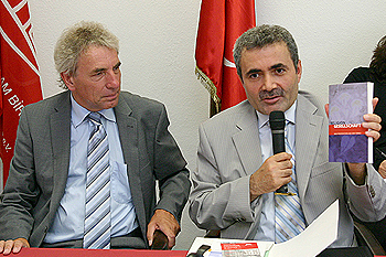 ![]() Jürgen Roters, der gemeinsame Kandidat von SPD und Grünen für die bevorstehenden Wahlen in Köln, grüßte zunächst in Türkisch und bedankte sich bei seinem Vorredner. In seiner Rede sagte er: „Zu einem der wichtigen Themen, die wir behandeln, gehört die Integration. Hier möchte ich besonders mit den türkischen Migrantenorganisationen kooperieren und zusammenarbeiten. Daher ist dieser Besuch bei der DITIB heute für mich sehr wichtig. Denn Integration ist sehr wichtig. Wenn ich gewählt werden sollte, werde ich ein guter Dialogpartner für euch sein, das verspreche ich euch. Integration ist nicht nur für mich ein wichtiges Anliegen, sondern auch für die SPD. Dem wollte ich mit diesem Besuch heute Ausdruck verleihen. Dabei kann Integration nicht nur von einer Seite erwartet werden, bzw. von dieser, dass sie Eingeständnisse macht. Vielmehr geht es hierbei um ein Geben und Nehmen, ein gegenseitiges Vertrauen. Dafür ist es besonders wichtig, stets im Dialog zu sein und zwar nicht nur, wenn es um Positives geht, sondern hinsichtlich aller Themen. Ich bin mir sicher, dass der Moscheebau die Fragezeichen in den Köpfen der Menschen positiv beantworten und die Moschee zu einem wichtigen Symbol der Integration werden wird. Gemeinsam und Schulter an Schulter haben wir uns bis jetzt Gruppen wie Pro-Köln, die den Moscheebau polarisierend nur Stimmung machen und Rassismus schüren wollten, entgegen gestellt. Dies werden wir auch in Zukunft tun. Ehrenfeld und Köln werden stolz sein auf diese Moschee. Mich beschäftigen in meiner Arbeit zwei Schwerpunktthemen, die unser aller Zukunft angehen: zum einen die Mehrsprachigkeit in den Schulen. Dies ist ein besonderes Steckenpferd von mir sowie meiner Partei.“