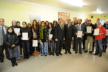 16 erfolgreiche Teilnehmer der Integrationskurse der DITIB Selimiye Moschee in Niederkassel erhielten in einer feierlichen Veranstaltung ihre Deutsch-Zertifikate.