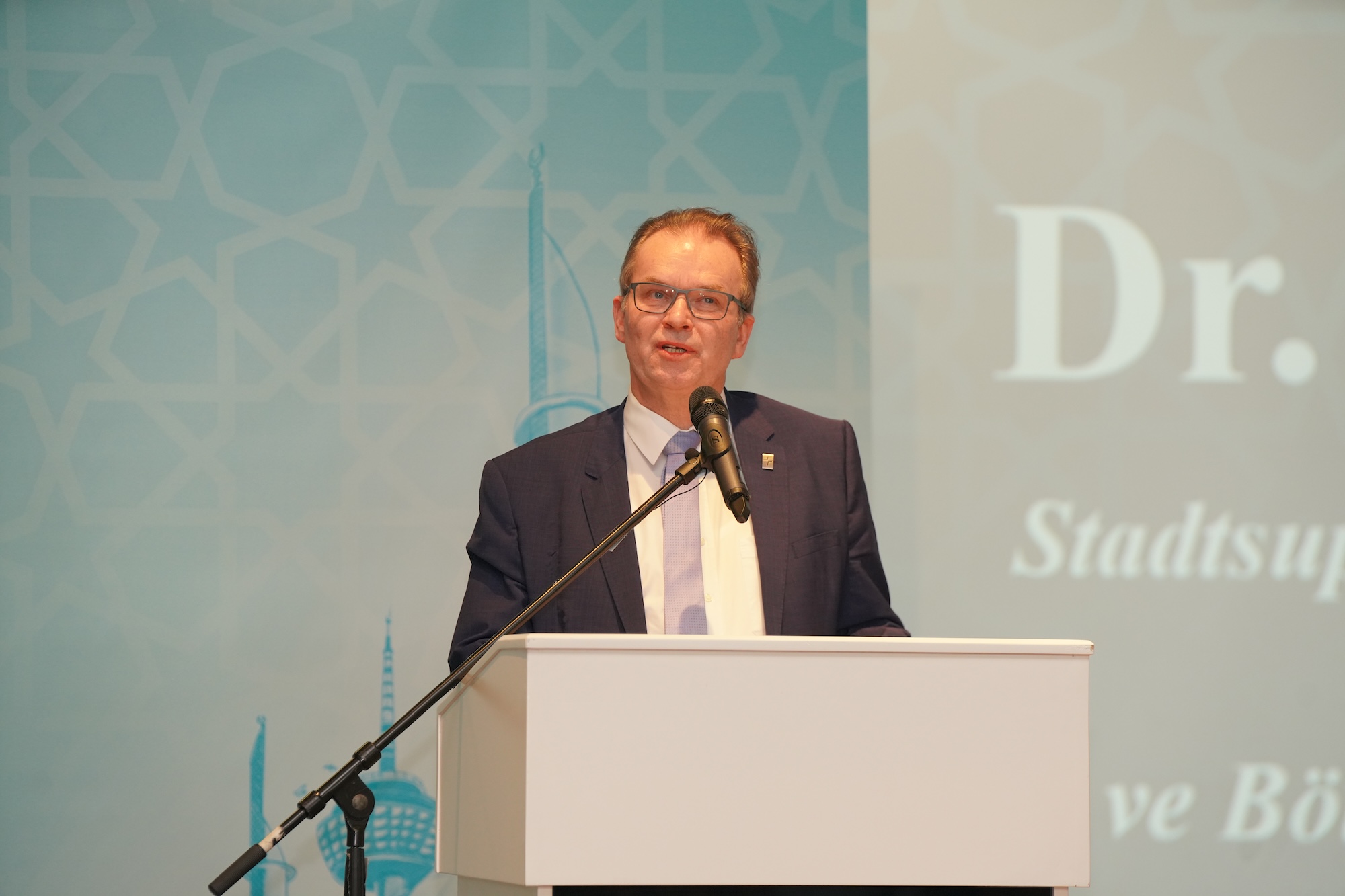 DİTİB iftar programında Alman Protestan Kilisesi Köln Bölgesi Protestan Kilise Birliği Başmüffettişi Dr. Bernhard Seiger de bir konuşması yaptı. Seiger, iftar sofralarına davet edilmenin Almanya’da artık güzel bir gelenek haline gelidğini ifade ederek, bunun sadece Müslümanlara değil farklı dini cemaatlere de değer verildiğinin bir göstergesi olduğunu söyledi. Seiger, Hrıstiyanlarda da oruç ibadetinin bulunduğunu belirtti. Seiger ayrıca Köln’deki Dinler Konseyi’nin bu yıl 20. yılına girdiğini ve konseyin Köln’de insanları bir araya getirmenin yanı sıra, hoşgörü ve saygıya katkı sağladığını söyledi.