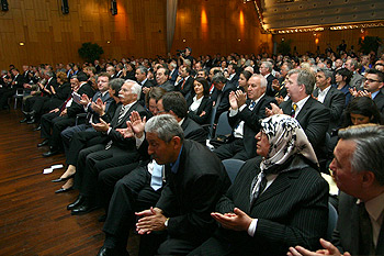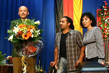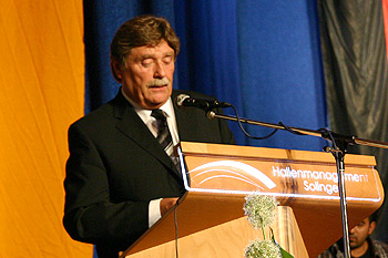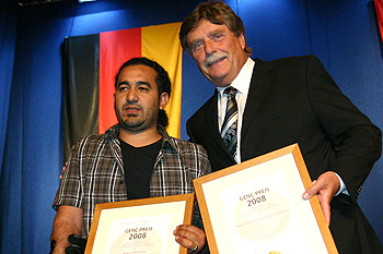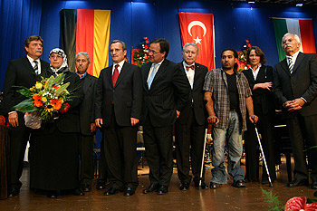 ![]() Cumhurbaşkanı Horst Köhler'in himayelerinde dağıtılan ödüle, Köln'de Diyanet İşleri Türk İslam Birliği (DİTİB) tarafından kubbeli ve minareli olarak inşaa edilecek olan Merkez Camii’ne, yoğun muhalefete rağmen destek veren Hıristiyan Demokrat Partili (CDU) Köln Anakent Belediye Başkanı Fritz Schramma ile, 3 Şubat 2008 tarihinde Ludwigshafen’de meydana gelen yangında eşi, çocukları ve yakınlarını yitiren Kamil Kaplan’a layık görüldü. ![]() ![]() ![]() Ödül törenine, T.C. Devlet Bakanı Prof. Dr. Mustafa Said Yazıcıoğlu, Federal İçişleri Bakanı Dr. Wolfgang Schäuble, Federal Hükümetin Göç, Mülteciler ve Uyumdan Sorumlu Devlet Bakanı Prof. Dr. Maria Böhmer, Kuzey Ren Vestfalya (NRW) Eyaleti Nesil, Aile, Kadın ve Entegrasyon Bakanı Armin Laschet, T.C. Berlin Büyükelçisi Ahmet Acet, T.C. Düsseldorf Başkonsolosu Hakan Olcay, T.C. Berlin Büyükelçiliği Din Hizmetleri Müşaviri ve DİTİB Genel Başkanı Sadi Arslan, T.C. Düsseldorf Başkonsosolluğu Din Hizmetleri Ataşesi ve DİTİB Genel Başkan Yardımcısı Mustafa Üstün, Solingen'de ırkçı saldırı neticesinde beş çocuğunu kaybeden Mevlüde-Durmuş Genç çifti, Ludwigshafen'de meydana gelen yangında eşi, çocukları ve akrabalarını kaybeden Kamil Kaplan, Hırıstiyan Demokrat Parti (CDU) Köln Büyükşehir Belediye Başkanı Fritz Schramma, Hırıstiyan Demokrat Parti (CDU) Federal Yönetim Kurulu Üyesi ve Berlin Milletvekili Emine Demirbüken-Wegner, DİTİB Genel Müdür V. Mehmet Yıldırım, Almanya eski Cumhurbaşkanı Johannes Rau'nun eşi Christina Rau, Solingen Belediye Başkanı Franz Haug, Türk-Alman Sağlık Vakfı Başkanı Dr. Yaşar Bilgin, Türk-Alman görsel ve yazılı basın mensupları ile 500’e yakın davetli katıldı. ![]() ![]() Saygı duruşu ve ardından Şef Betin Güneş yönetimindeki orkestranın, Solingen olayına atfen bestelediği Solin-Genç eserinin sunumu ile başlanan ödül töreninin açılış konuşmasını Solingen Belediye Başkanı Franz Haug yaptı. Haug konuşmasında, Solingen’de meydana gelen bu olayın, her kesimden insanı üzdüğü gibi, en çok da Solingen’lileri üzdüğünü söyledi. NRW Uyum Bakanı Armin Laschet de: “Solingen'deki kundaklama sadece Türk kökenlilere değil, Almanya'ya ve anayasaya da yapılmış bir saldırıdır 15 yıl önceki olayda dört genç bir ailenin yaşamını alt üst etti. Sadece Genç Ailesi'nin bireylerini değil, insanların sınıf arkadaşlarını, dostlarını ve bizim halkımızı elimizden aldılar. Bu öfke 15 yıl önce geride kaldı ama üzüntümüz hala devam ediyor.” Türk kökenli insanlarda korkunun kısmen sürdüğünü ifade eden Bakan Laschet: “Ludwigshafen'deki yangından sonraki gelişmeler bu korkunun bir göstergesidir. Ama artık biz yabancılardan söz etmiyoruz. Göç kökenli insanlardan bahsediyoruz. Almanya'nın bir göç ülkesi olup olmadığını tartışmıyoruz. Bunun öyle olduğunu biliyoruz“. Laschet Durmuş ve Mevlüde Genç çiftine dönerek sözlerini Türkçe olarak şöyle tamamladı: 'Size çok teşekkür etmek istiyorum. İnanılmaz gücünüzle, insanlara olan bitmeyen sevginizle bir çok insanın başaramadığını başardınız. Kuzey Ren Vestfalya sizinle gurur duyuyor. Unutmayın, biz daima sizin yanınızdayız“ dedi. ![]() Federal İçişleri Bakanı Dr. Wolfgang Schäuble: “Solingen anısına düzenlenen anma töreninin insanların kendilerini muhasebe yapmalarına imkan sağladığını ve hayatlarını kaybedenlerin neden öldüklerini düşündüğümüzde, sorunun temeline inmiş oluruz. Mağdurların hep yanlarında olacağımızı bilmelerini isterim. Genç ve Kaplan ailesinin de yaşadıkları karşısında gösterdikleri metanet takdire şayandır. Barış, hoş görü mesajı verdiler. Şiddetten uzak durdular. Devletin görevi vatandaşlarının can güvenliğini sağlamaktır“ dedi. ![]() T.C. Berlin Büyükelçisi Ahmet Acet de yaptığı konuşmasında: “Solingen’de Genç Ailesi’nin evinin kundaklanmasının üzerinden 15 yıl geçmiştir. Anadolu’dan henüz gençlik çağlarında gelerek, bu ülkede yeni bir hayat kuran Genç Ailesi’nin yaşamını ebediyyen değiştiren bir ırkçı saldırının yarattığı travmayı anmak için düzenlenen bu anlamlı tören vesiyesiyle aranızda bulunmaktan duyduğum memnuniyeti ifade etmek istiyorum. 16 yıl önce Möln’de, 15 yıl önce Solingen’de vuku bulan yabancı düşmanlığı ve ırkçı kaynaklı saldırıların hafızalardan silinmesi mümkün değildir. Irkçılık ve yabancı düşmanlığı gibi hasta zihniyetler, ne yazıkki fırsat verildiği takdirde yeşerebilecek zemin bulabilmektedir. Bazen siyasi oluşumların gölgesine sığınabilmektedir. Buna karşı dikkatli olmalıyız. Kamu düzenini tehdit eden potansiyel virüsler böyle ortaya çıkmaktadır. Kuşkusuz, toplumların güvenini tehdit edenlere karşı mücadele, hükümetlerin temel görevlerinin başında gelmektedir. Alman Hükümeti’nde bu iradeyi görmek bizim içimizi rahatlatmaktadır. Buradan vatandaşlarımıza seslenmek istiyorum. Korkmasınlar ve yılmasınlar. Zira, Alman ve Türk devleti kendilerine sahip çıkacak, huzur ve refah içinde toplumla bütünleşmiş olarak iç içe yaşamaları için yükümlülüklerini yerine getirecektir. Bunun için varız. İki ülke olarak sizlerden beklentimiz, sorumlu bireyler olarak topluma katkıda bulunmanızdır. Onurlu bir şekilde günlük yaşamınızı sürdürmenizdir. Bu ödülün uyum içerisinde bir arada yaşamanın simgesi haline gelmesini temenni ediyorum. Bu düşünceyle organizasyonda emeği geçenlere ve buna destek veren devlet ricaline şükranlarımı sunuyorum. Genç Ailesini kederlerinde yalnız bırakmayan ve yaşanan insanlık ayıbının tekrarlanmaması için hiçbir çabayı esirgemeyen siz değerli konukları selamlıyor, ırkçı saldırılarla hayatlarının 