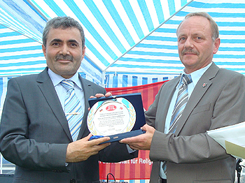 ![]() Konuşmasının ardından DİTİB Genel Başkanı Sadi Arslan, Edingen DİTİB Selimhan Camii tarafından günün anısına hazırlanan plaketi başkan Marsch’a takdim etti.