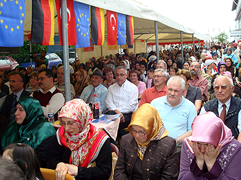![]() Bugün hem Türkler hemde Almanlar için çok güzel birgün. Burada birçok Alman vatandaşımı görmüş olmaktan da ayrıca mutlu oldum. Bizler her zaman biraraya gelmek zorundayız. Çünkü bir tane dünyamız var ve bir Allah’a inanıyoruz. Bizim barışçıl bir hayat sürdürmemiz için bu gerekli. Umuyorum ki bu cami uyuma katkıda bulunacaktır” dedi.