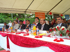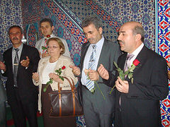 ![]() Selimhan Camii’nin açılışına, T.C. Karlsruhe Başkonsolosu Emine Birgen Keşoğlu, DİTİB Genel Başkanı Sadi Arslan, T.C. Karlsruhe Başkonsolosluğu Din Hizmetleri Ataşesi Dr. Dursun Aygün, DİTİB Yönetim Kurulu Üyesi Kenan Genç, Edingen Belediye Başkanı Ronald Marsch, DİTİB Dinler ve Kültürlerarası İlişkiler Müdürü Bekir Alboğa, Türkiye’den programa katılan Istanbul Kadıköy´den Adem Karabey ve Ankara Kocatepe Camii Müezzini İlhan Şengül, kilise ve sivil toplum kuruluşları temsilcileri, Karlsruhe bölgesi DİTİB dernek yöneticileri ve din görevlileriile çok sayıda Türk ve Alman davetli iştirak etti. ![]() Edingen DİTİB Selimhan Camii Din Görevlisi Nurettin Midilli ve Baden Bölgesi DİTİB Sorumlusu Fatih Şahan´ın sunuculuğunu yaptıgı program, Türk ve Alman Milli Marşlarının okunmasının ardından Adem Karabey tarafından Kur´an Kerim tilavetiyle başladı.