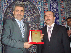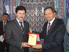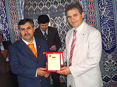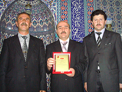![]() Arslan, bu eserin yapımında ve desteğinde başta cami yönetimi olmak üzere, Din Hizmetleri Ataşemize ve çalışma arkadaşlarına, emeği geçen herkese ve özellikle kadın kollarına teşekkür etti. Göstermiş oldukları üstün başarı ve gayretlerinden dolayı Edingen DİTİB Selimhan Camii Dernek Başkanı Nihat Özdemir’e bir plaket takdim etti.