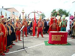 ![]() ![]() Şiir, piyes ve mehter takımının gösterileri ile devam eden program, T.C. Karlsruhe Başkonsolosu Emine Birgen Keşoğlu, DİTİB Genel Başkanı Sadi Arslan, T.C. Karlsruhe Başkonsolosluğu Din Hizmetleri Ataşesi Dr. Dursun Aygün, DİTİB Yönetim Kurulu Üyesi Kenan Genç, Edingen Belediye Başkanı Ronald Marsch açılış kurdelasını kesilmesi, cami bölümlerinin gezilmesi ve dernek tarafından günün anısına hazırlanan plaketlerin takdimleriyle sona erdi.