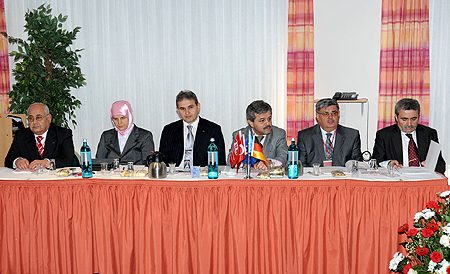 DİTİB Genel Başkanı Sadi Arslan, genel kurulda yaptığı konuşmasında, DİTİB`in bugün Almanya’da ulaştığı konumunun önemi üzerinde durarak, Müslüman azınlığın, dini ve kültürel kimliğine sahip çıkması ve içinde yaşadığı topluma uyum konusunda yaptığı olumlu katkıya vurgu yaptı. Arslan, DİTİB’in hem Federal Uyum Zirvesinde, hem de Alman İslam Konferansı’nda aktif rol üstlenen muhatap bir kuruluş konumu kazandığını söyledi. ![]() Çok sıcak ve samimi bir ortamda gerçekleşlen DİTİB’in 12. Genel Kurulu’nda yeni Yönetim Kurulu şu isimlerden oluştu: Prof. Dr. Ali Dere (İlahiyatçı) Sadi Arslan (İlahiyatçı) Dr. Ali İhsan Ünlü (Tıp Doktoru) Fuat Kurt (Yüksek İnşaat Mühendisi) Şinasi Akyürek (Yüksek Elektrik ve Elektronik Mühendisi) Erdinç Altuntaş (Yüksek Makina Mühendisi) Orhan Bilen (Yüksek Elektrik Mühendisi) ![]() 12. DİTİB Olağan Genel Kurulu’nda genel kurul üyeleri, yaptıkları konuşmalarda DİTİB’in yapmış olduğu hizmetlerinden ve geldiği bugün kü durumundan övgüyle bahsederek memnuniyetlerini ifade ettiler. ![]() Yeni yönetim kurulu, kendi arasında yaptığı ilk oturumda görev bölümü yaptı. Sadi Arslan’ın DİTİB Başkanlığına getirildiği DİTİB Yönetim Kurulu'nda görev bölümü şu şekilde oluştu: Genel Başkan Sadi Arslan Genel Başkan Yardımcısı Prof. Dr. Ali Dere Genel Sekreter Dr. Ali İhsan Ünlü Genel Sekreter Yardımcısı Fuat Kurt, Genel Muhasip Şinasi Akyürek, Genel Muhasip Yardımcısı Erdinç Altuntaş Yönetim Kurulu Üyesi Orhan Bilen ![]() 12. Dönem DİTİB Yönetim Kurulu’nun belirlenmesinin ardından İkinci kez genel başkanlığa seçilen Sadi Arslan bir teşekkür konuşması yaptı. Kendisine ve yeni yönetim kurulu üyelerine gösterilen güvene layık olmaya gayret edeceklerini söyleyerek, birlikte bir önceki dönem görev yaptığı yönetim kurulu üyelerine teşekkür etti. ![]() ![]() |