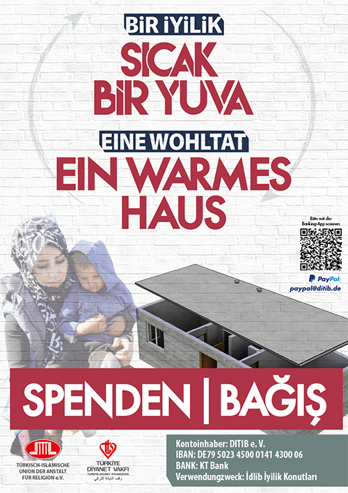 Mağdurlarının acı ve üzüntülerini paylaşmak amacıyla Almanya DİTİB camiası olarak bir yardım kampanyası başlatılmıştır.